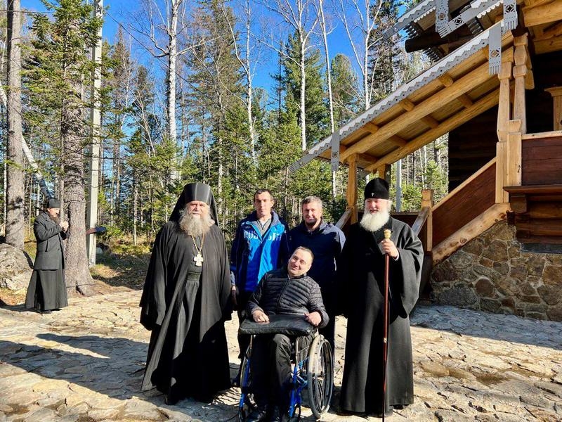 Леонида в коляске по очереди сопровождали друзья: в храме, ко Причастию, по пути на трапезу.
